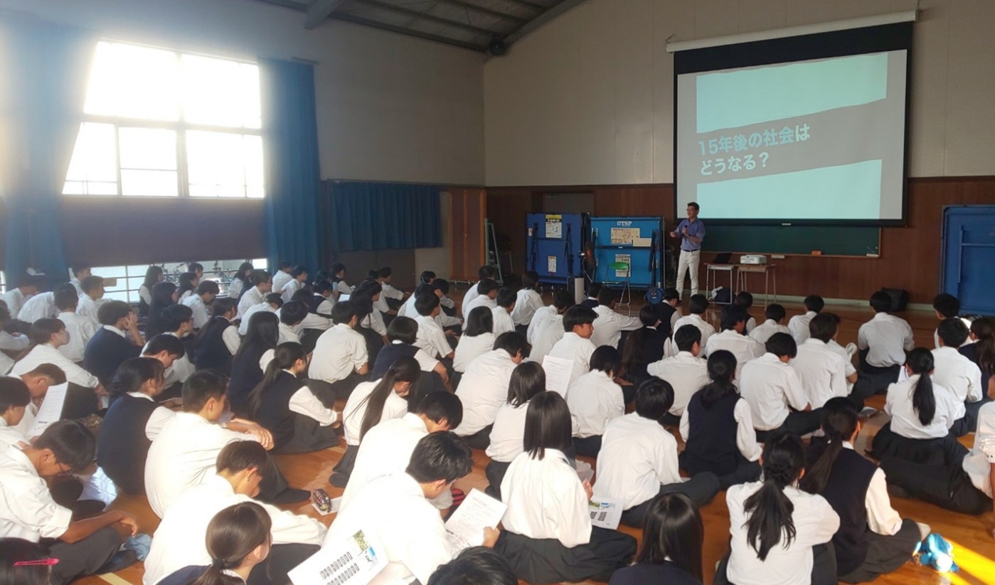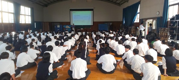 7月12日(金)に、大津市民会館にて、『令和6年度アントレプレナーシップ講演会』を、全校生徒を対象に実施しました。 今回の講演は、「しがアントレプレナーシップハイスクール(SESH)事業」の一環として実施し、講師として、ONE SLASH代表 清水広行様 をお招きしました。 講演の中では、『地元を面白く』をキーワードに、様々な活動や体験を通して地域課題を解決する「起業家的行動能力」を養う「ソーシャルアントレプレナーシップ」の考え方と、その実例を紹介していただきました。 生徒たちからは、「まず行動してみることの大切さを学べた」「地域のために自分なら何が出来るのか、考えるきっかけとなった」「自分も起業してみたい」などの感想が得られました。今回の講演で学んだことを探究活動などで生かし、自分の興味関心を深められるような学びにつなげていきたいという思いを強めた生徒が多くみられました。